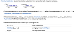 Wolfram Language. (2014). TimeSeriesWindow. Wolfram Language & System Documentation Center. Retrieved from https://reference.wolfram.com/language/ref/TimeSeriesWindow.html