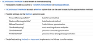 - The setting "StateSpaceConversion"->Automatic computes the approximation using the transfer-function representation, except for the "ZeroOrderHold" method.