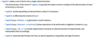 - The denominator of the result of Together is typically the lowest common multiple of the denominators of each of the terms in the sum.
