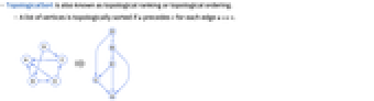 - A list of vertices is topologically sorted if u precedes v for each edge uv.