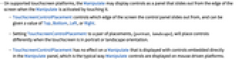 - On supported touchscreen platforms, the Manipulate may display controls as a panel that slides out from the edge of the screen when the Manipulate is activated by touching it.