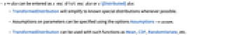 - TransformedDistribution can be used with such functions as Mean, CDF, RandomVariate, etc.