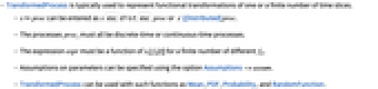 - TransformedProcess is typically used to represent functional transformations of one or a finite number of time slices.