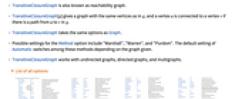 - Possible settings for the Method option include "Warshall", "Warren", and "Purdom". The default setting of Automatic switches among these methods depending on the graph given.