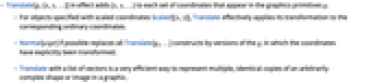 - Normal[expr] if possible replaces all Translate[gi,…] constructs by versions of the gi in which the coordinates have explicitly been transformed.