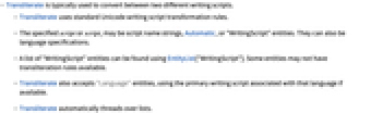 - Transliterate also accepts "Language" entities, using the primary writing script associated with that language if available.