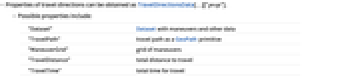 - Properties of travel directions can be obtained as TravelDirectionsData[…]["prop"].