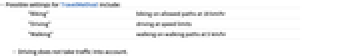 - Possible settings for TravelMethod include:
