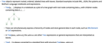 - Trees can simultaneously express a hierarchy of nodes and store general data in each node, such as XMLElement or Cell expressions.