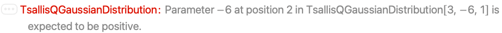 - TsallisQGaussianDistribution allows μ to be any real number, β to be any positive real number, and q to be any real number less than 3.