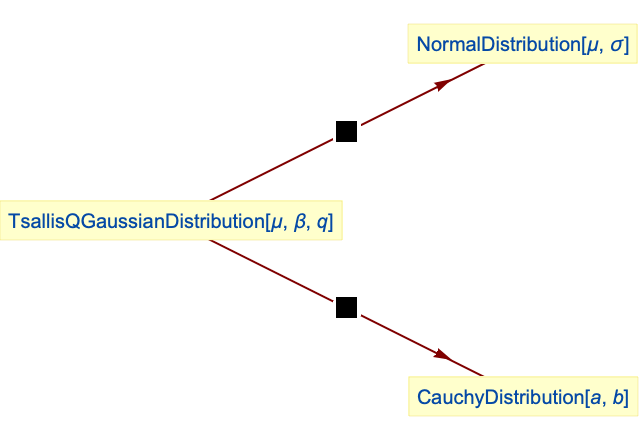 ). TsallisQGaussianDistribution can be realized as an instance of CauchyDistribution, in that TsallisQGaussianDistribution[μ,β,2] is equivalent to CauchyDistribution[μ,β