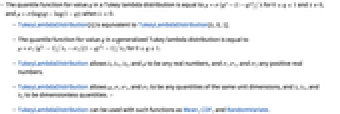 - TukeyLambdaDistribution allows μ, σ, σ1, and σ2 to be any quantities of the same unit dimensions, and λ, λ1, and λ2 to be dimensionless quantities. »