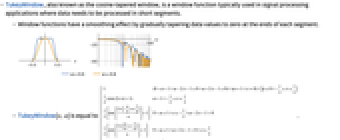 - TukeyWindow, also known as the cosine-tapered window, is a window function typically used in signal processing applications where data needs to be processed in short segments.