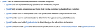 - TypeOf only accepts expressions and types that can be compiled by the Wolfram Compiler.