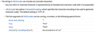 - The first argument of URLEncode can be a string, a number, or the following special forms: