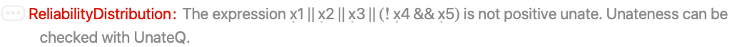 - UnateQ[bf,{ind1,ind2,…}] tests whether the Boolean function bf is unate in variable k according to the indicator indk.