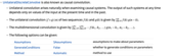 - Unilateral convolution arises naturally when examining causal systems. The output of such systems at any time depends only on values of the input at the present time and in the past.