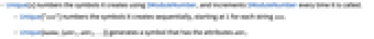 - Unique["xxx"] numbers the symbols it creates sequentially, starting at 1 for each string xxx.
