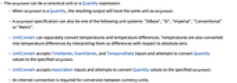 - UnitConvert accepts Association inputs and attempts to convert Quantity values to the specified targetunit.