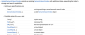 - UpdateSemanticSearchIndex extends an existing SemanticSearchIndex with additional data, expanding the index’s storage and search capabilities.