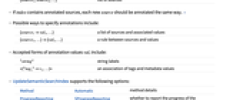 {source1val1,…} a list of sources and associated values {source1,…}{val1,…} a rule between sources and values - Accepted forms of annotation values vali include: