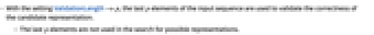 - With the setting ValidationLength->p, the last p elements of the input sequence are used to validate the correctness of the candidate representation.