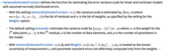 - VarianceEstimatorFunction defines the function for estimating the error variance scale for linear and nonlinear models with assumed normally distributed errors.