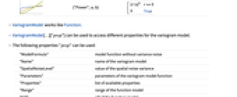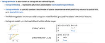 - VariogramModel[…] represents a function generated by EstimatedVariogramModel.