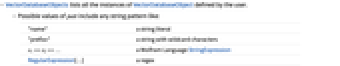 - VectorDatabaseObjects lists all the instances of VectorDatabaseObject defined by the user.