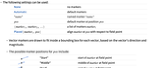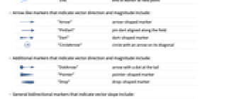 "End" end of marker at field point - Arrow-like markers that indicate vector direction and magnitude include: