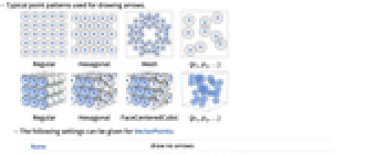 "Regular" draw arrows on a regular grid "Hexagonal" draw arrows on a 2D or 3D hexagonal grid "Mesh" draw arrows on a 2D discretized mesh "FaceCenteredCubic" draw arrows on a 3D face-centered cubic grid