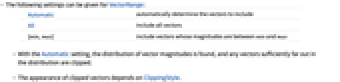 Automatic automatically determine the vectors to include All include all vectors {min,max} include vectors whose magnitudes are between min and max - With the Automatic setting, the distribution of vector magnitudes is found, and any vectors sufficiently far out in the distribution are clipped.