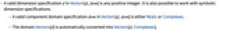 - A valid dimension specification d in Vectors[d,dom] is any positive integer. It is also possible to work with symbolic dimension specifications.