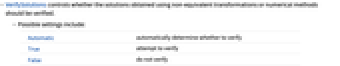 - VerifySolutions controls whether the solutions obtained using non-equivalent transformations or numerical methods should be verified.