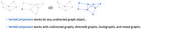 - VertexComponent works with undirected graphs, directed graphs, multigraphs, and mixed graphs.