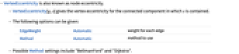 - VertexEccentricity[g,s] gives the vertex eccentricity for the connected component in which s is contained.