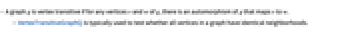 - VertexTransitiveGraphQ is typically used to test whether all vertices in a graph have identical neighborhoods.