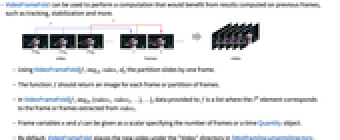 - VideoFrameFold can be used to perform a computation that would benefit from results computed on previous frames, such as tracking, stabilization and more.
