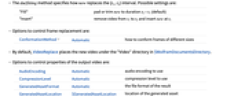 ConformationMethod Automatic how to conform frames of different sizes - By default, VideoReplace places the new video under the "Video" directory in $WolframDocumentsDirectory.