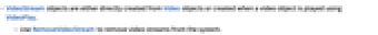 - VideoStream objects are either directly created from Video objects or created when a video object is played using VideoPlay.