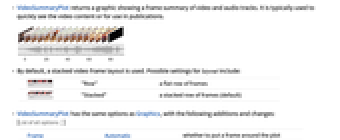 "Stacked" a stacked row of frames (default) - VideoSummaryPlot has the same options as Graphics, with the following additions and changes: [List of all options]