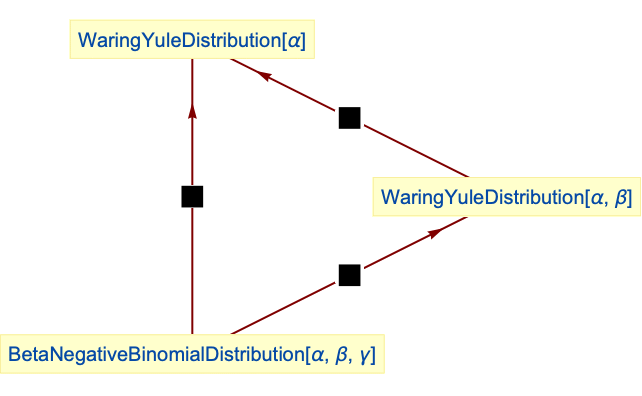). WaringYuleDistribution is also closely related to PoissonDistribution, PoissonConsulDistribution, and PolyaAeppliDistribution.