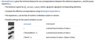 DistanceFunction Automatic the distance function to be used Method Automatic the variant of DTW to use - WarpingDistance accepts a DistanceFunctiond option with settings: