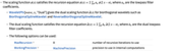 for biorthogonal wavelets such as BiorthogonalSplineWavelet and ReverseBiorthogonalSplineWavelet. - The dual scaling function satisfies the recursion equation