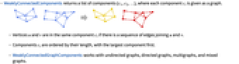 - WeaklyConnectedGraphComponents works with undirected graphs, directed graphs, multigraphs, and mixed graphs.