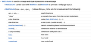 - WebColumn[expr,spec1,spec2,…] allows the speci to be any list or sequence of the following: