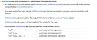 - If no web session has been started, WebExecute[cmds] starts a web session, executes cmds, then ends the web session.