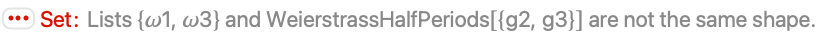 Assignment of half‐periods corresponding to symbolic or exact invariants is impossible as the right‐hand side is not a list: