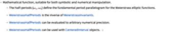 - WeierstrassHalfPeriods can be evaluated to arbitrary numerical precision.