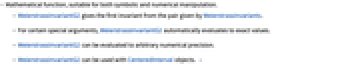 - For certain special arguments, WeierstrassInvariantG2 automatically evaluates to exact values.